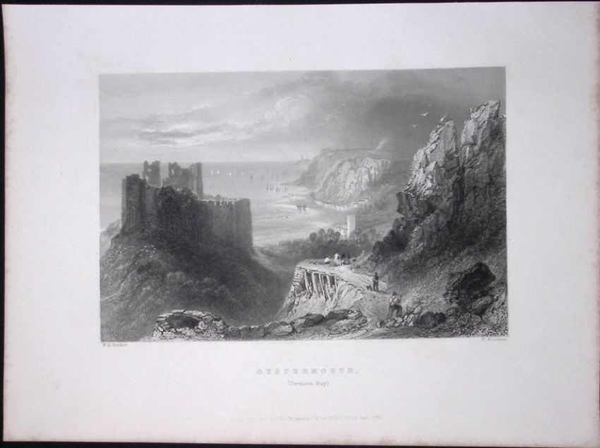 Title: Oystermouth Swansea Wales WH Bartlett 1842 Antique Steel Engraving-112