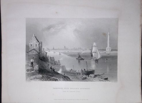 Title: Yarmouth Nelsons Monument WH Bartlett 1842 Antique Steel Engraving-202.