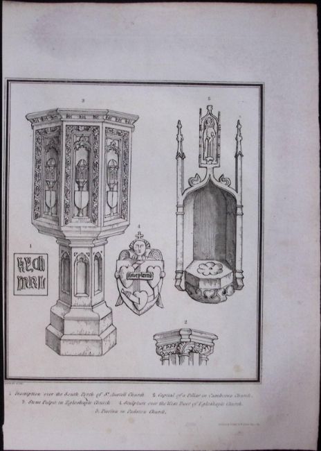 Title: Cornwall South Porch St Austell Church Rare Antique Copper Plate Etching By S Lyons