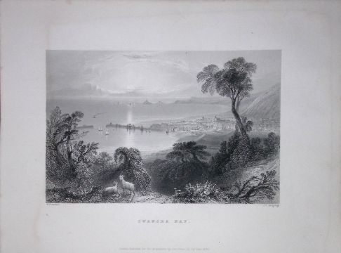 Title: Wales View of Swansea Bay WH Bartlett 1842 Antique Steel Engraving-207.