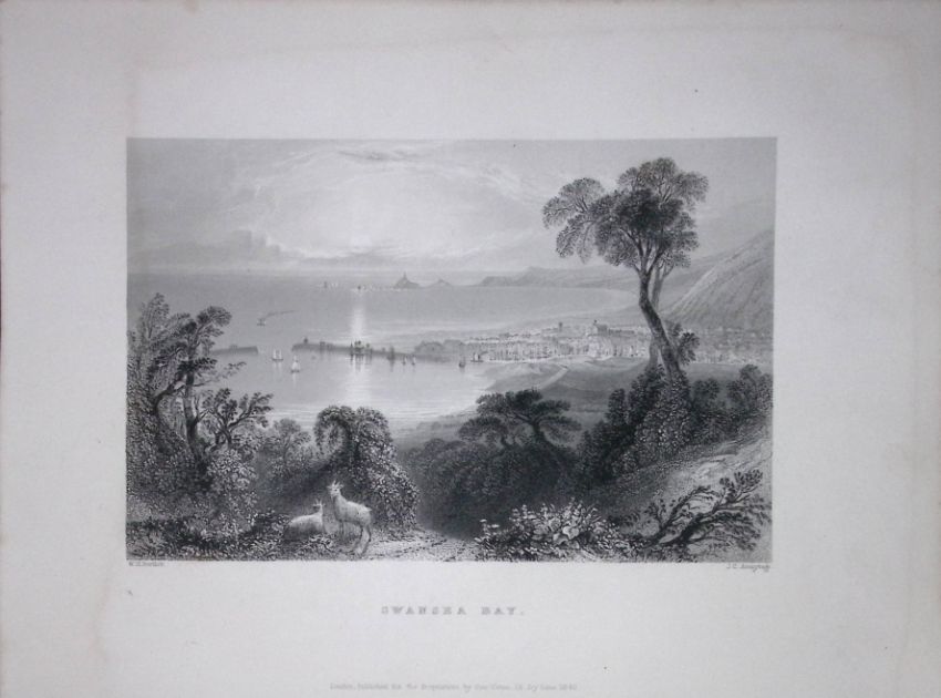 Wales View of Swansea Bay WH Bartlett 1842 Antique Steel Engraving-207.