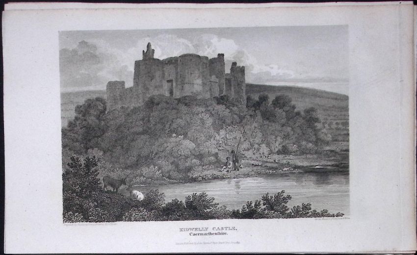 Kidwelly Castle Wales Antique 211 Years-Old Georgian Steel-Engraving-486