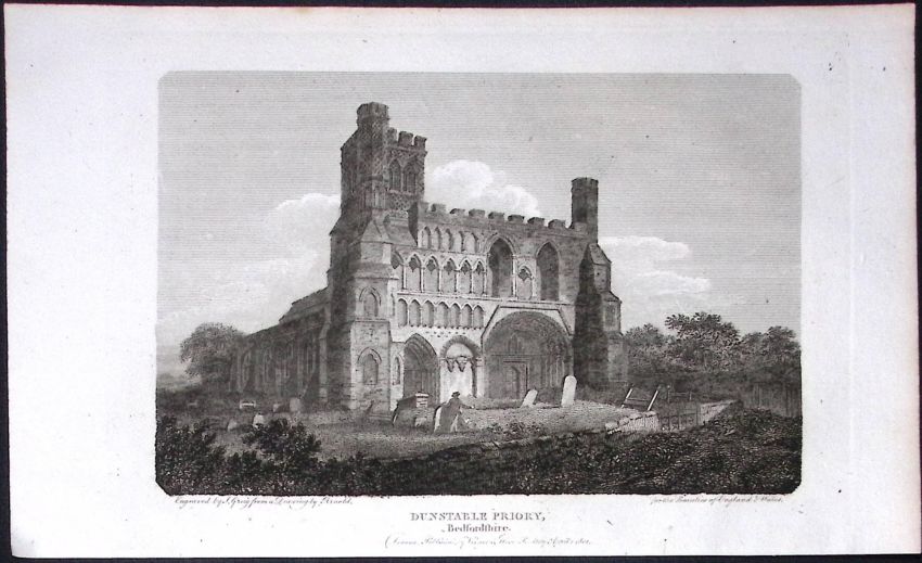 Title: Dunstable Abbey Bedford Antique 225 Years-Old Georgian Steel-Engraving-411