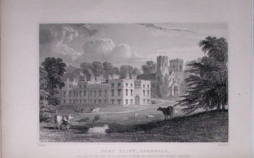 Cornwall St Germans Port Eliot Antique 193 Years-Old Steel-Engraving-30.