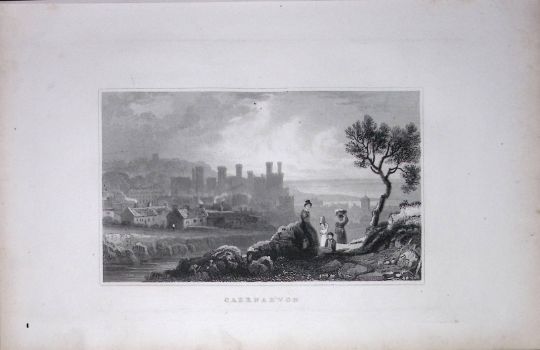 Title: Wales Caernarvon Castle Antique 166-Year-Old Steel Engraving-39.