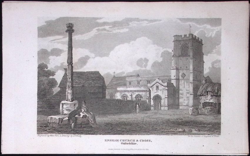 Title: Ensham Church & Cross Oxfordshire Antique 212 Years-Old Steel-Engraving-57