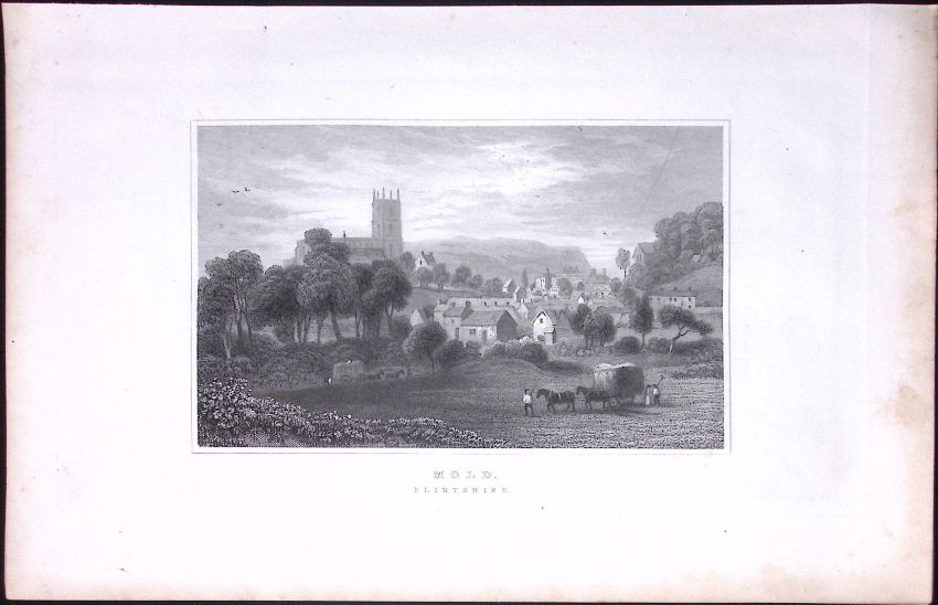Title: Wales-Mold Flintshire Antique 166-Year-Old Steel Engraving-14