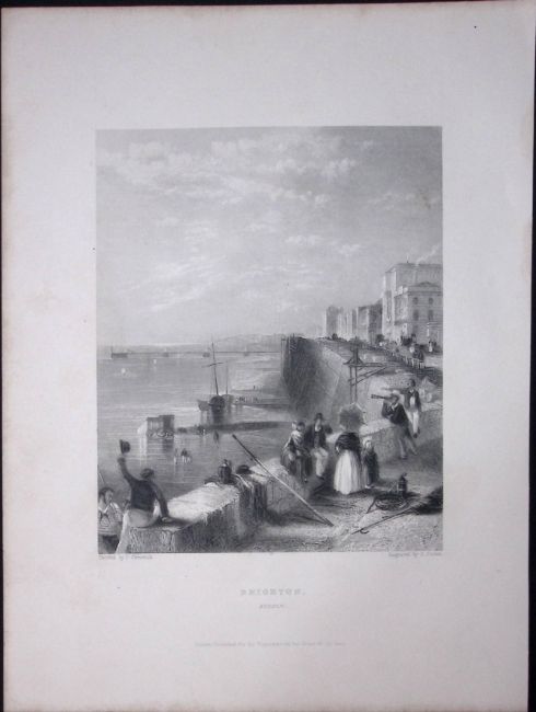 Title: Brighton Harbour Wall WH Bartlett 183 Years-Old Antique Steel Engraving-21