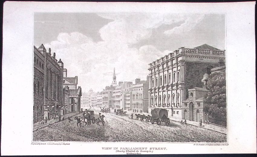 Title: Parliament Street London Antique 215 Years-Old King George III Steel Engraving-226