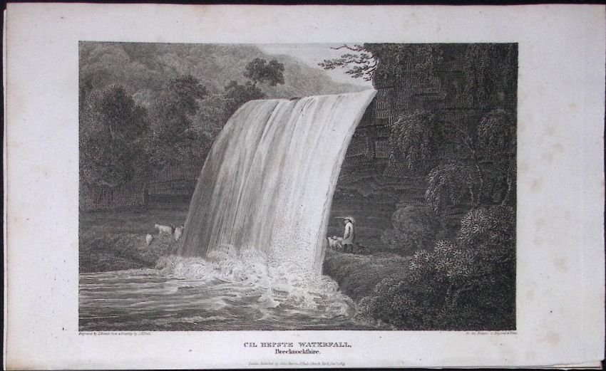 Title: Cil Hepste Waterfall Wales Antique 211 Years-Old Georgian Steel-Engraving-488