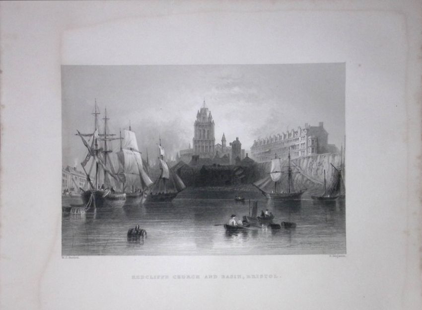 Bristol Redcliffe Church & Basin WH Bartlett 1842 Antique Steel Engraving-201.