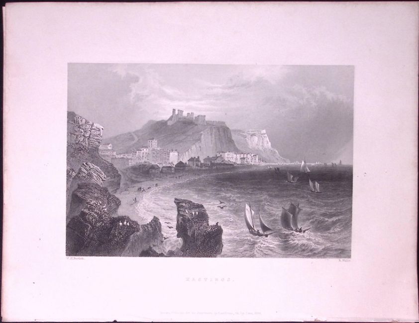 Title: Hastings Sussex WH Bartlett 183 Years-Old Antique Steel Engraving-30