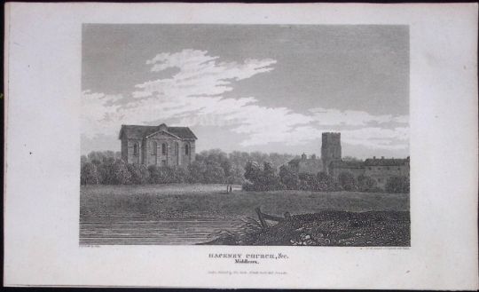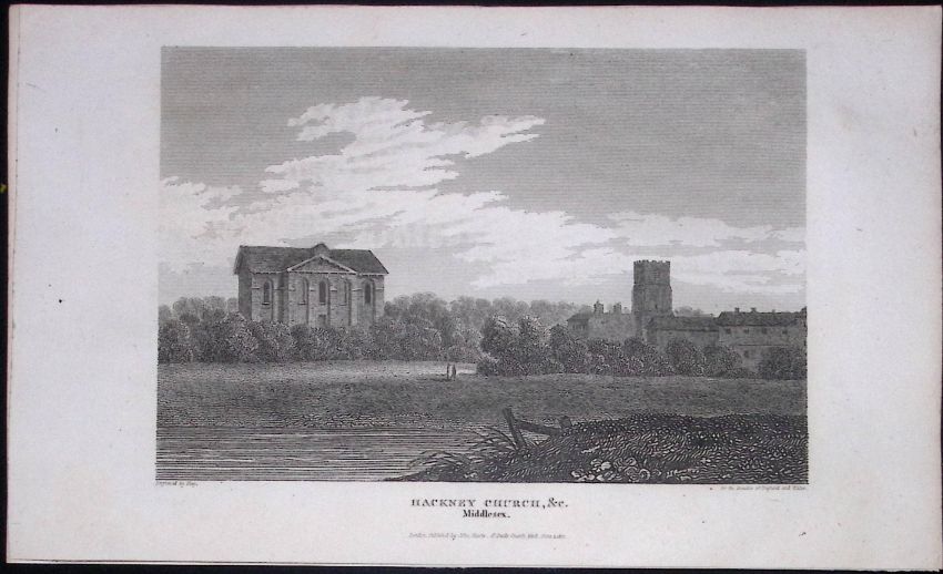 Title: London Hackney Church Antique 200 Years-Old Steel-Engraving-111