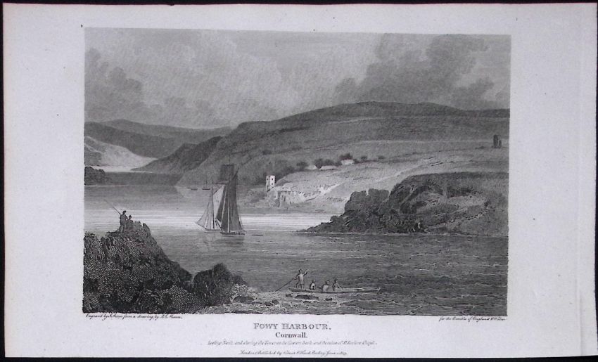 Title: Fowley Harbour Cornwall Antique 224 Years-Old Steel-Engraving-75