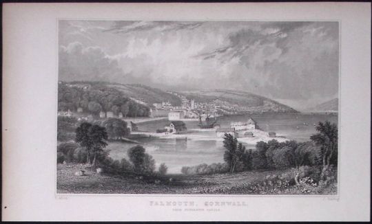 Title: Cornwall Falmouth Harbour Antique 193 Years-Old Steel-Engraving-1
