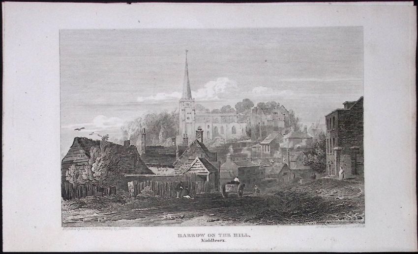 Title: London Harrow on the Hill Antique 200 Years-Old Steel-Engraving-100