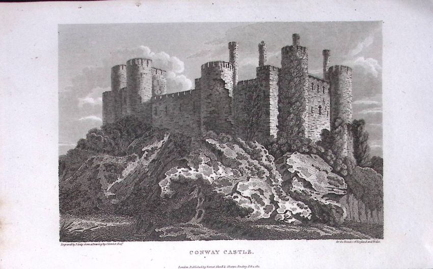 Conwy Castle Wales Antique 213 Years-Old Georgian Steel-Engraving-193.