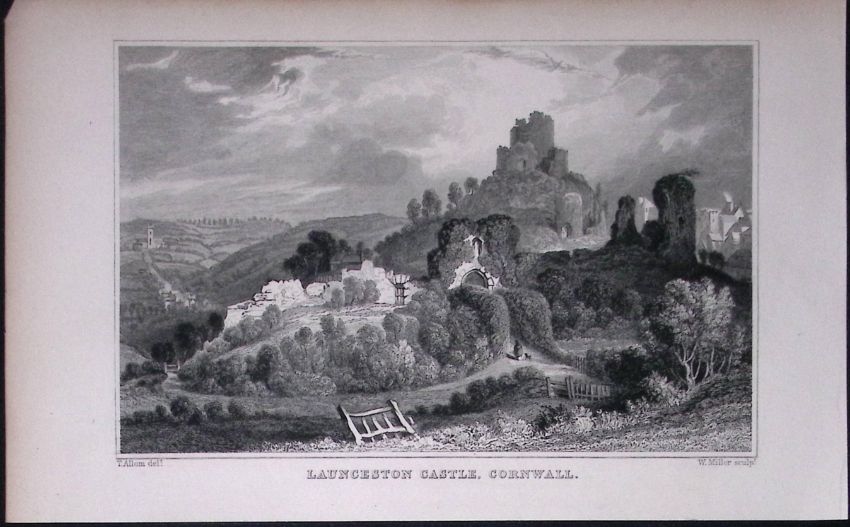 Title: Cornwall Launceston Castle Antique 193 Years-Old Steel-Engraving-18