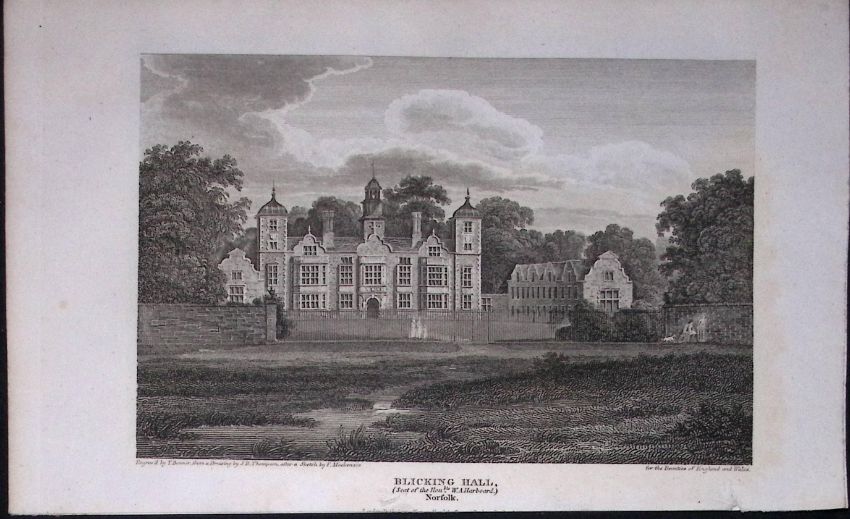 Title: Blicking Hall Norfolk Antique 216 Years-Old Georgian Steel-Engraving-436