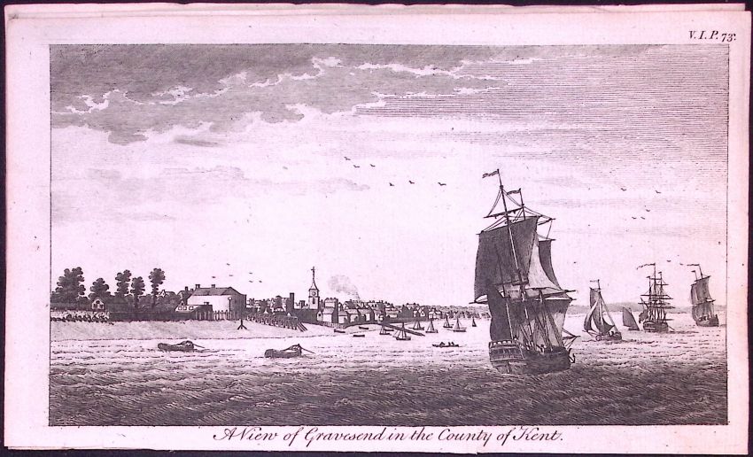 Title: Kent Gravesend Rare 1776 Georgian Copper Plate Antique Engraving -74