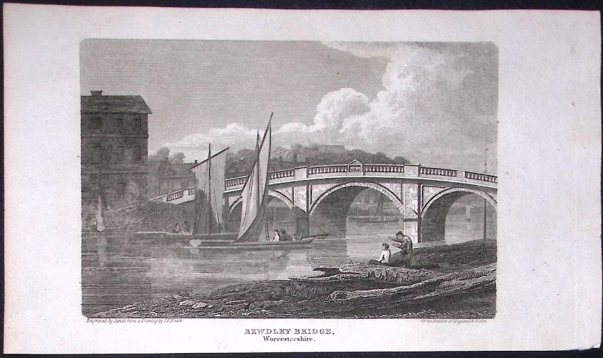 Title: Bewdley Bridge Worcester Antique 212 Years-Old Georgian Steel-Engraving-400