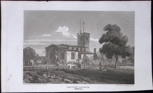 Title: London Hendon Church Antique 200 Years-Old Steel-Engraving-99