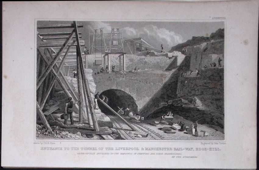 Title: Liverpool & Manchester Railway Entrance Tunnel Antique 195 Years-Old Steel-Engraving-49.