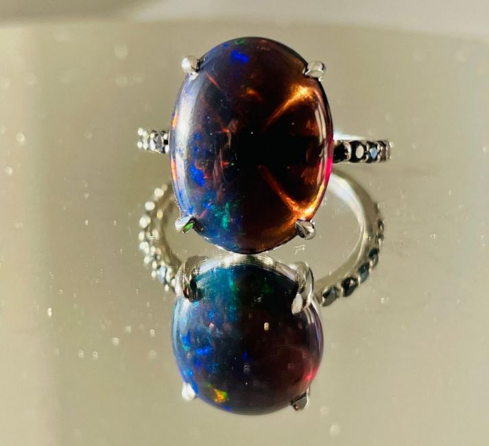 Title: Beautiful 5.22 CT Natural Black Opal Ring With Natural Black Diamond & 18k Gold