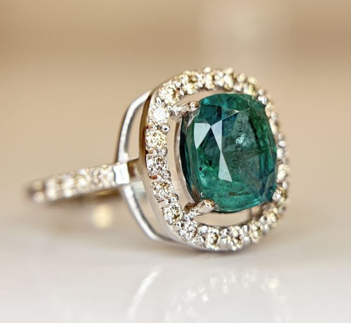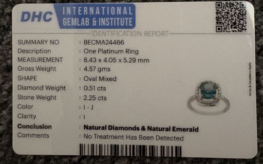 Title: Beautiful 2.25 CT Natural Emerald Ring With Natural Diamonds & Platinum 950