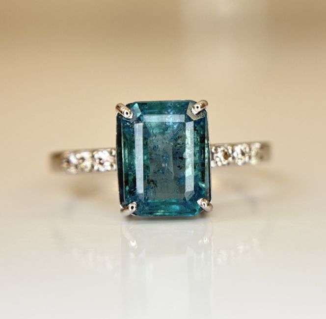 Title: Beautiful 3.50 CT Natural Emerald Ring With Natural Diamonds & Platinum 950