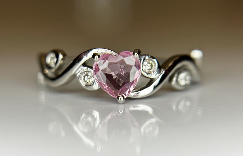 Title: Beautiful 0.48ct Heart Shape Unheated Ceylon Pink Sapphire Diamonds & 950 Platinum