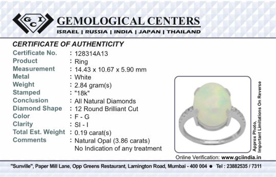 Title: Beautiful Natural Opal 3.86 CT Ring With Natural Diamond and 18k Gold