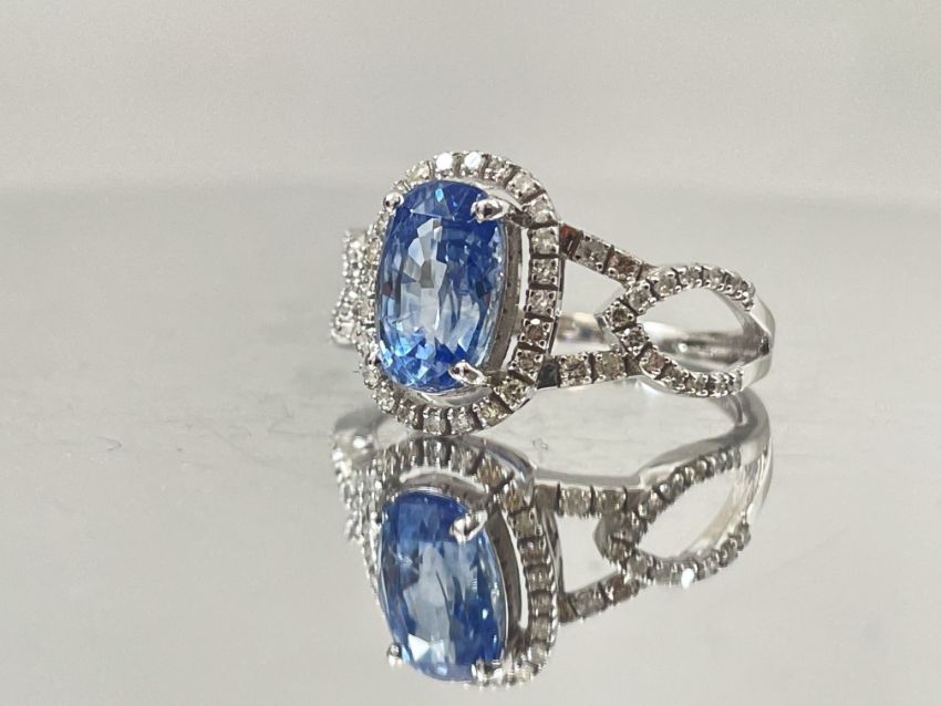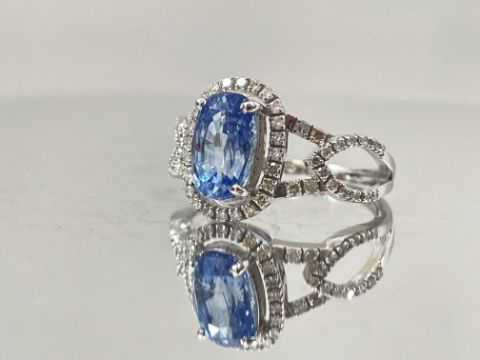Beautiful 3.16 ct Natural Ceylon Blue Sapphire With Natural Diamonds & 18k White Gold.