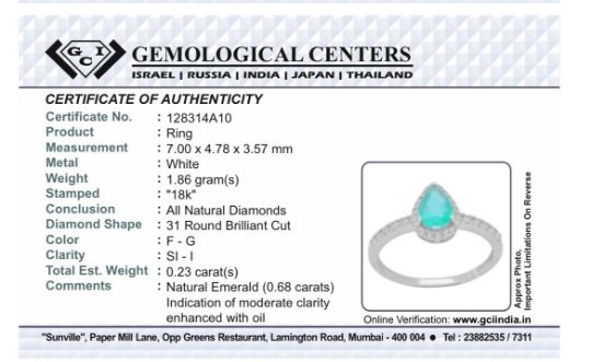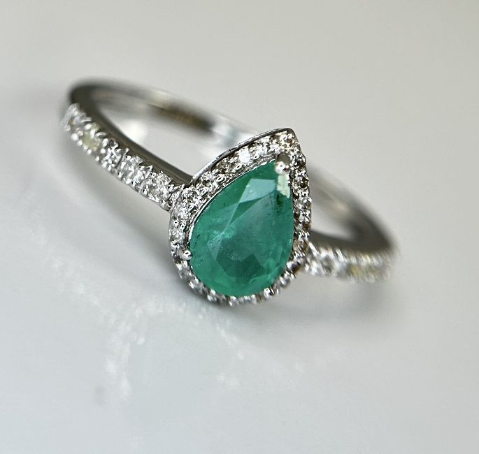 Title: Beautiful Natural Emerald 0.68 CT With Natural Diamonds & 18k Gold