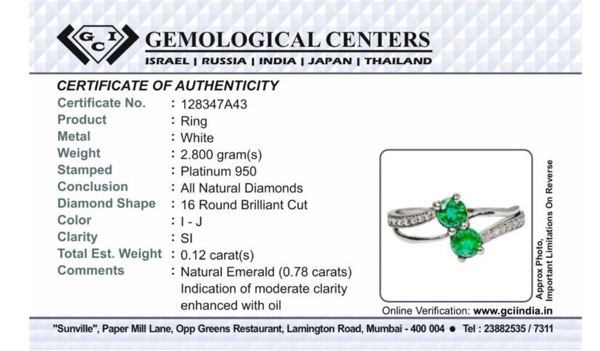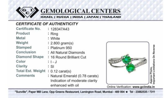 Title: Beautiful 0.78Ct Natural Emerald Ring With Natural Diamonds & Platinum 950