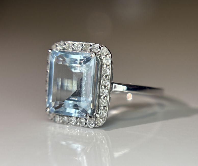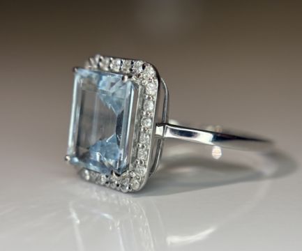 Title: Beautiful 2.71 CT Natural Aquamarine Ring With Natural Diamonds & 950 Platinum