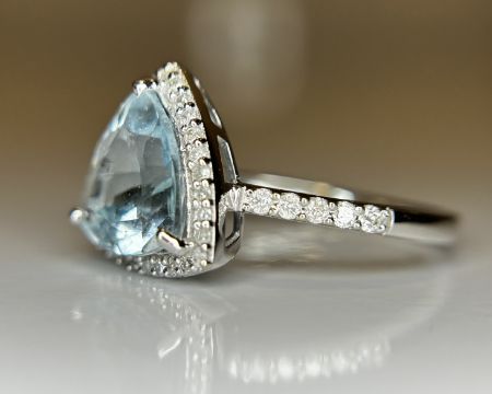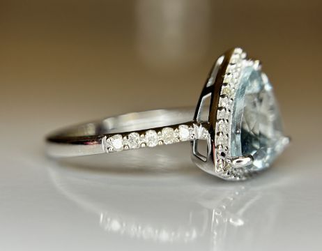 Title: Beautiful 1.86 CT Natural Aquamarine Ring With Natural Diamonds & 18k White Gold