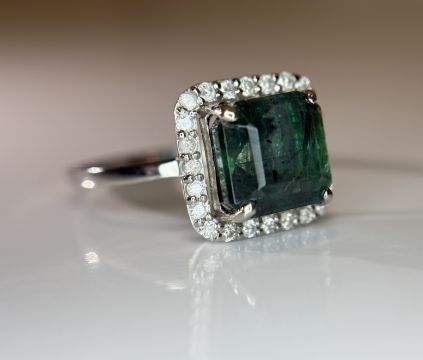 Title: Beautiful 3.88 CT Natural Emerald Ring With Natural Diamonds & Platinum 950