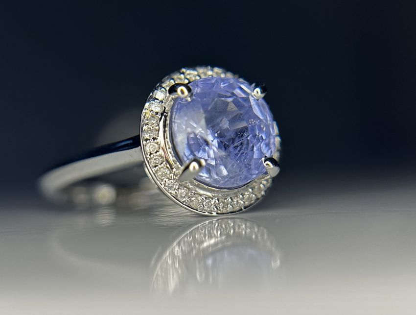 Title: Beautiful 2.60 CT Unheated Ceylon Blue Sapphire With Natural Diamonds & 18k Gold