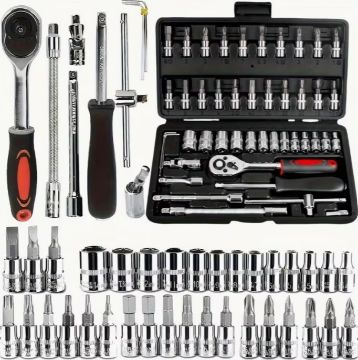 46pcs Stainless Steel Tool Set - Precision Ratchet Wrench, Screwdriver Bits& Sockets, Versatile Repair Kit for Auto, Bike& Home Maintenance